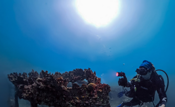 Realizamos mergulhos nos recifes para fotografar os corais, registrando cada detalhe de suas formas, texturas e cores.